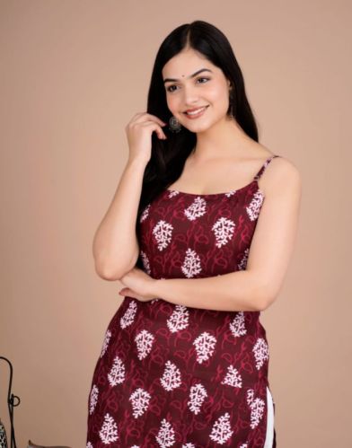 Floral Print Sleeveless Kurta Pant, Size : M, XL, XXL