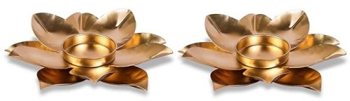 Flower Shape Metal Tea Light Holder, Color : Golden