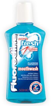 we are offering fluorodine active fresh mouthwash. fluorodine is high performance mouthwash that helps clean away plaque and bacteria. rinse with fluorodine after brushing for a deep and refreshing clean. provides extra protection between brushing and fresher breath. fluorodine mouthwash can improve oral hygiene in conjunction with regular brushing and flossing. containing fluoride and other active ingredients fluorodine mouthwash helps reduce the build up of plaque and bacteria in the mouth, for longer lasting fresh breath, and healthy gums and teeth.