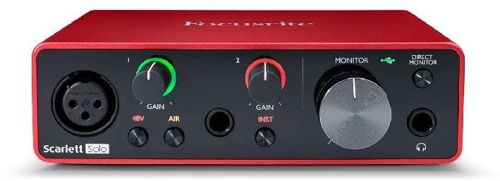 Contact SupplierIt's so easy to make music with Focusrite's Scarlett Solo USB audio interface! Ideal for the singer-songwriter, the Scarlett Solo sports the legendary Focusrite preamp as well as a crystal-clear DI for your guitar, bass, or keys. Focusrite's unique gain halos make it easy to control your levels, while the headphone jack, Direct Monitor switch, and large volume dial make monitoring a breeze.For this third-generation Scarlett Solo, Focusrite has not only raised the bar with vanishingly low latency, 192kHz sample rates, optimized preamp gain structure, and an instrument input that handles scorching hot pickups; they also included the acclaimed Air circuit that models their legendary ISA console transformer to give your voice and instrument recordings a brighter, more open sound. The Scarlett Solo G3 delivers the pro-quality sound you need — at a price you'll love. Plug in, fire up the bundled software, and you're ready to rock.
