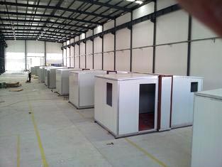 We are offering foldable portable emergency shelter description: wall color: blue, white, red roof color: blue, white, red windows: white door: white main frame: steel frame insulation: eps, pu,xps size: 5.1m*3m to 12m.