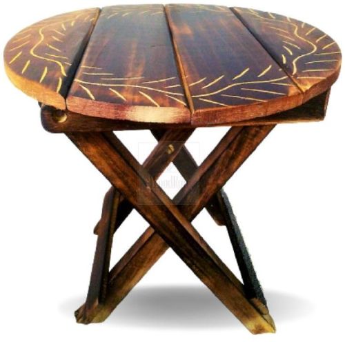 Foldable Small Round Wooden Stool Handcarved End Table