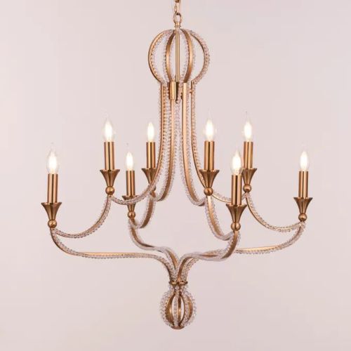 Contact SupplierCoinciding with the colonial design palette, our Follow Your Muse Crystal Chandelier is sure to transport you to the bygone era. Crystal beads in acrylic delicately dangle from the graceful arcing spindles, with a pair of spherical counters on each end of the metal frame. Gold finish adorns this symmetrical beauty and the slender arms counterbalance its monumental length. The elegant electric-candle sleeves cast a soft and ambient glow, thus making this crystal centrepiece, a perfect choice for living and dining spaces. Savour a closer look at this decadent design or discover similar silhouettes in our chandelier collection.