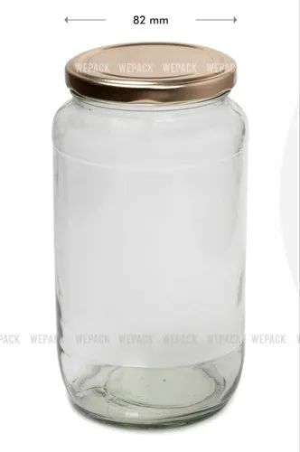 Mg Overseas 1000ml Round Glass Jar, For Food Item, Color : Transparent