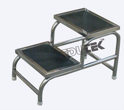 Foot Step Double FOOT STEP for the table Double foot step for the use for the patient made of Steel frame round Square pipe frame construction and sheet on the top of the step with mat fitted on the top for non-sticky material and rubber shoe for finish.