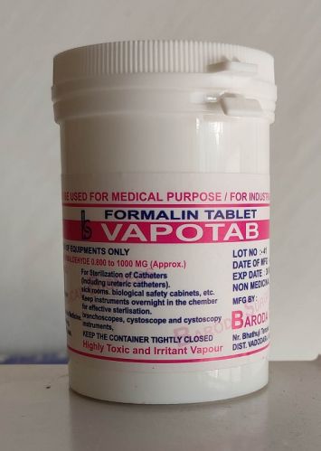 Contact SupplierFormalin Tablets are used for vapour sterlization of equipments along with this it is used for sterlization of catheters (including ureteric catheters), sock rooms, biological safety cabinets etc.