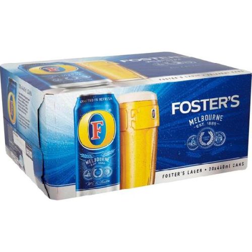 Foster's cans 20 x 440ml foster's is a light, golden lager with a medium malt character. An easy-drinking lager with a delicate fruity hop aroma and a balanced taste, foster's rolls of the tongue leaving a clean crisp finish.