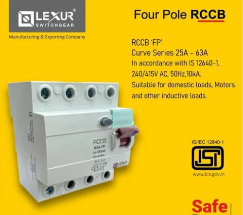 Lexur 50Hz Four Pole RCCB Switch, Certification : ISI Certified