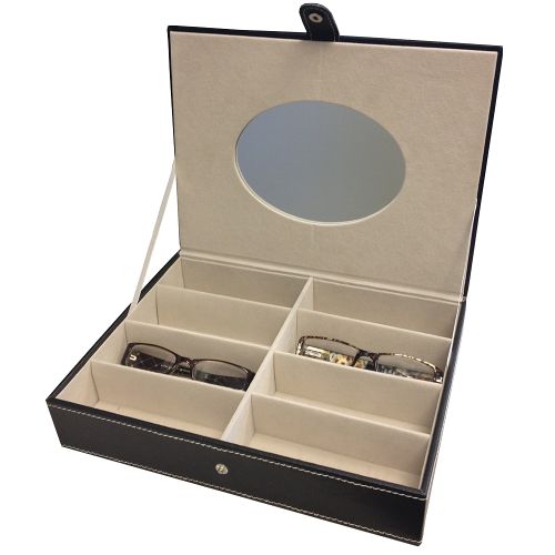 Sturdy yet elegant, this presentation case has 8 internal cavities, and a mirror in the lid. Metal body construction covered in a black leatherette material, metal snap closure. Outer dimensions: 12" x 9" x 2.5”. Frame cavity size: 5.75" x 2.25". Product weight: 2.5 lbs. ea CALIFORNIA PROPOSITION 65 WARNING: These products contain chemicals known to the State of California to cause cancer, and birth defects or other reproductive harm.