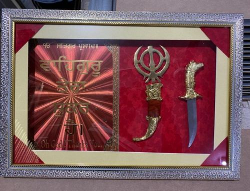 Frame With Shabad And Kirpan, For Decoration, Religious Use, Feature : Elegant Design