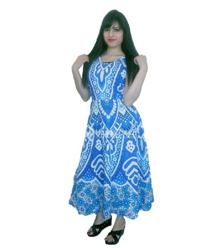 Contact SupplierDesigned with perfection, this blue designer long evening gown will surely fetch you compliments for your rich sense of style. Made with pure cotton, this floral printed dress soft against the skin and keep you at ease.