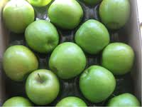 the skin of bagged furit is yellow--green and the surface of furit is very clean . It tastes sweet , crunchy, juicy.