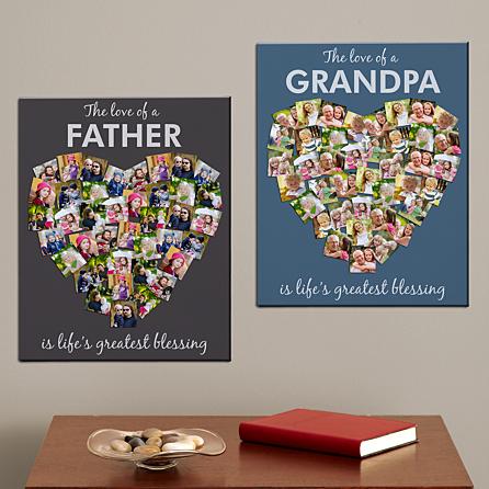 A Personal Creations Exclusive! This gift from the heart showcases favorite moments with his loved ones—and why he’s so blessed. Canvas is stretched over a solid wood frame. Personalize with any title up to 15 characters. Upload 10 photos. Images are duplicated throughout the heart. Available in 11"Wx14"H, 16"Wx20"H or 18"Wx24"H sizes in gray and blue. Includes sawtooth hanger. Item cannot be gift boxed. Due to size and packaging requirements, item will ship separately from other items in your order. Item