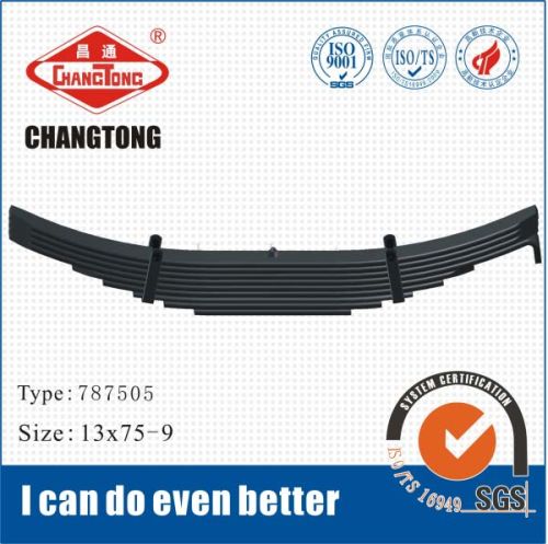 We are offering front leaf spring. Manufacturing process: 1.cutting of flat bar 2.center hole punching drilling 3.end heating process forming (hot & cold process) 4.heat treatment (1)heating (2)camber forming (3)quenching (4)tempering 5.surface preparation (1)shot peening stress peening (2)painting 6.assemble (1)presetting & load testing (2)paint touch-up (3)marking & packing.
