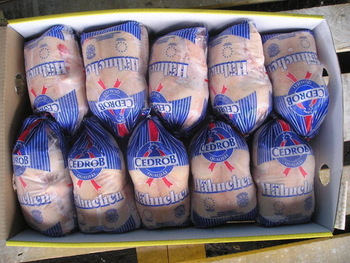 Containing 10 eviscerated Chicken - Individual Warped Packed. (external shrink pack).