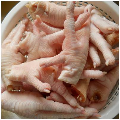 We are offering frozen chicken feet and paws. Weight per piece: 28g - 38g each size per piece: 12 cm - 16cm temperature: (- 35 c) temperature of warehouse: (- 17 c) during transport temperature: (- 15 c) percentage of broken bones: maximum 3% broken bone black spots: maximum 2% black pad or ammonia burns smell: no bad smell moisture: moisture content less than 3% feathers off outer yellow skin off well clean, washed & fresh outer hard nail on