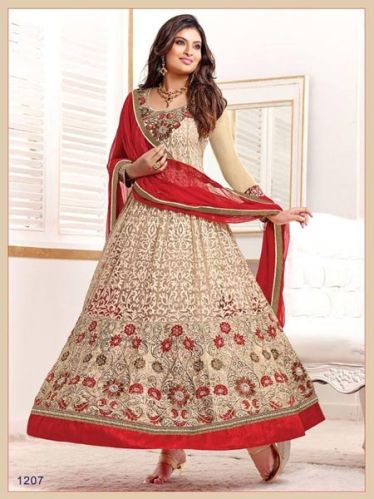 We are offering fs1720 georgete embrodary work maroon semi stitched anarkali suit. georgette top: maroon,santoon bottom:maroon, georgette dupatta: maroon, inner:rosilk, size:1.90 mtr top,2.25 mtr bottom, 2.25 mtr dupatta, pattern:embroidered, occasion:casual wear,hand wash only anarkali type suit.