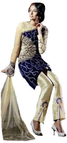 We are offering fs2350georgette embrodary work cream semi stitched anarkali type suit, georgette top:blue,santoon bottom:cream,georgette dupatta:cream,inner:rosilk,size:1.90 mtr top,2.25 mtr bottom,2.25 mtr dupatta,pattern:embroidered ,occasion:party wear,dry clean only anarkali type suit.