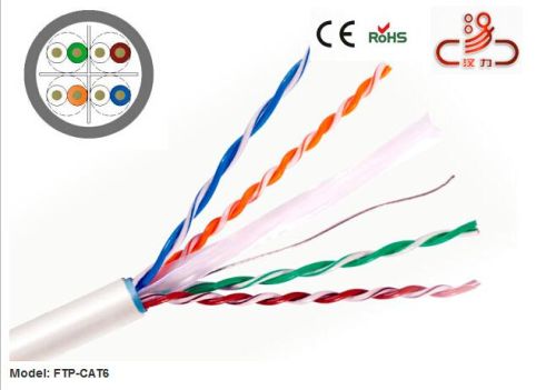 Offers ftp cat6 cable. 1.bc or cca conductor.23awg 2.hdpe insulation, od1.02mm 3.twisted pairs, cross inside. 4.pet film and al foil shield, tinned copper drain wire. 5.pvc jacket, od:6.20mm 6.package: 305meterswooden drum 7.oem order is welcome.