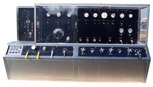 The test bench consists of a 10’ft ha10 series console 6’ft h x 4’ft d and includes all fluid pumps, pump motors, stainless steel reservoir, pressure and flow controls, fluid coolers, and instrumentation.