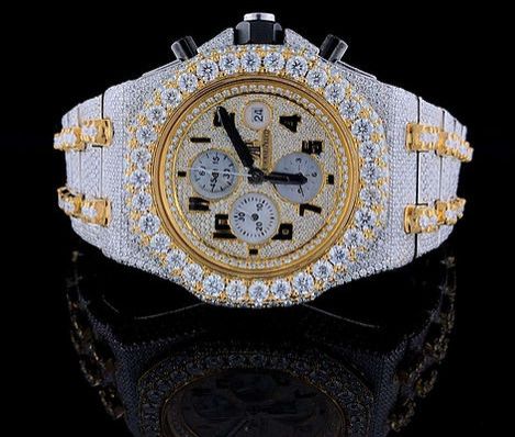 Fully Iced Out Audemars Piguet Round Golden Dial Moissanite Diamond Watch?