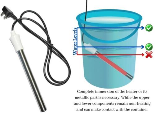 2. The lower and the upper part of the heater will not get heated so they can come in contact with the water container or bucket, only the middle portion of the heater is the heating area so it won't damage the any plastic bucket as it most likely won’t come into contact with the bucket.