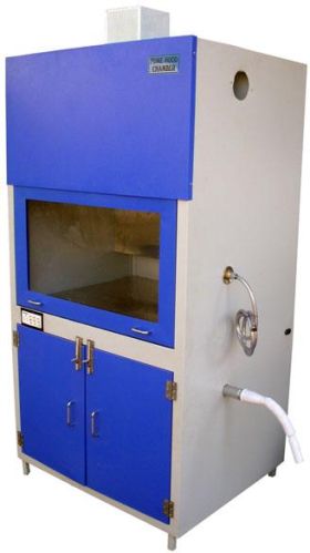 Fume hood made of stainless steel or mild steel. The outer (size 3’ x 3’ x 6’ feet) is made out of S.S 304 grade, mild steel powder coated and wooden mica pasted finished and 316 grade inside acid resistant. The work surface is fitted with small wash basin with good quality tap. A gas cock is also fitted for gas supply. A sliding slash made of glass moves vertically up and down with concealed counter balanced weight. Chamber is fitted with 20W fluorescent light. Space underneath the work station is provided with storage compartment. 15/5 Amp socket with switches is provided for light and exhaust system. Fume Hood Chamber is supplied with cord and plug to work on 220/440volts 1/3 phase 50Hz A.C. Complete with exhaust system PVC 4” x 10’ft round fume duct. The duct for exceeding above 10’ft length high CFC exhaust system provided optional.