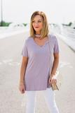 This violet mock neck tee combines comfort,luxury and fun to give you the ultimate wardrobe staple. It's bamboo blended fibers provide for the softest feel and the highest quality.