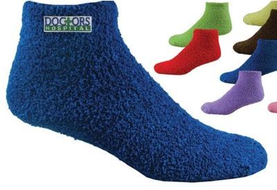 100% polyester. One size fits most. Available in 13 colors. Comes with dot grip slip resistant finish. Price includes 100% embroidered applique or DigiPrint applique, up to 1 14" X 1 14" on each sock. Price includes up to 9 embroidery colors. Individually polybagged. Bulk packed 12 pairs per polybag.