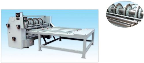 Functions and Features (Common type): This machine is comprehensive production equipment, which is used to slot, cut the corner and roll the line of base paperboard. Its main characteristic is to feed paperboard piece by piece with hand and it suits the curling paperboard as well.