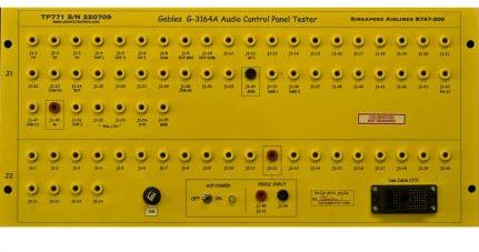 Breakout Test Box used for bench testing, troubleshooting, repair and calibration of Singapore Airlines B747-200, Audio Control Panel G3164A as manufactured by Gables Engineering, as specified in Gables G3164A ATP . It is used in conjunction with cable part number C771. Standard 19" rack- mount configuration or ABS enclosure available.