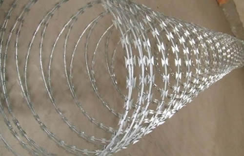 we offer galvanized razor wire has thick zinc coating to resist acid rains and all weathers. compared with naked steel razor wire, galvanized wire is very durable and will not rust. galvanized razor wire often combines with chain fences, field fence, welded wire fence, walls and gates to provide high security. widely used in residential, commercial, military, garden, boundary and prisons.