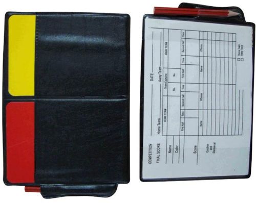 We are offering refree card wallet. Refree card wallet • foldable wallet includes one red & one yellow card and a 15-page score pad. • handy zippered pouch with wrist strap.