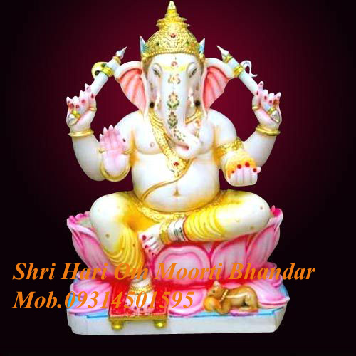 Lord Ganesha is one of the deities best-known and most widely worshiped in the Hindu pantheon. We are offering our reputed clients a wide range of Ganesh Statues that portrays him sitting down on a Lotus flower in pink and yellow colors. For highlighting His ornaments and weapons, bright golden color has been used. Our designers keep in mind the standard configuration of Lord Ganesha who typically holds an axe or a goad in one upper arm and a noose in the other upper arm. Being a symbol of good luck, he is honored at the beginning of rituals and ceremonies