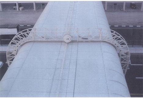 Guide RailThe guide railing for gantry ladder will be of galvanized steel pipe which will be anchored to the middle steel column of the elevation along the gantry ladder traversing path to guide the gantry ladder in the pre determined routing for access to the required elevations of the building.