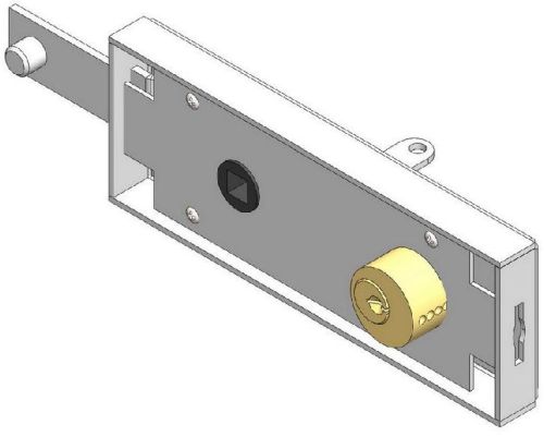 Reinforced steel bolt: 2mm steel plated folded back on itself to reach overall 6.5mm thickness • handle square 8mm • unlocking lever • bolt with 6mm hole is optional • single turn, 4 pins cylinder lock • interchangeable: with most common rollershutter locks available on the market. The reinforced bolt makes the roller shutter more resistant toattack • solid brass cylinder • rustproof zinc plated box and components • 3 brass key, chromed plated item no. A b pins finish qty/box cl01.09 155 56 4 galvanized.