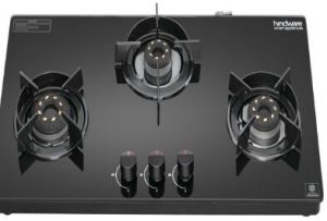 7mm Thick Toughened Glass with Black color Forged Brass Burners Chrome Finish SS Drip Trays Flame Gaurd Pan Supports Elegant Metallic Knobs Elegent Black color channel Manual Ignition