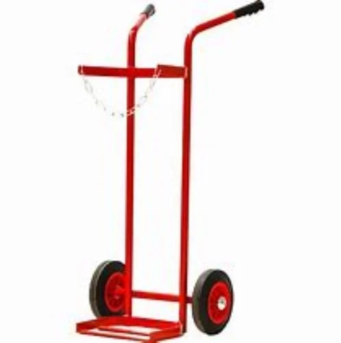 Easy Move Red Polished Iron Gas Cylinder Hand Trolley, For Industrial