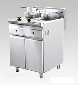 FRYER / S/STEEL FREE STANDING GAS DEEP FRYER - 14 Pan capacity Liters, Chrome plated mesh basket, Basket dim: 220 X 250 X 100 MM, S/S oil pan/grid screen/ drain pipe, Equipped w/ thermocouple and high limits safety device, weight 61kg.