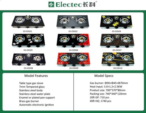 Our gas stoves are designed to be portable. It can be used in the kitchen or outdoor services. Features - ss or glass panel brass or cast iron burners stainless steel body automatic electronic ignition.