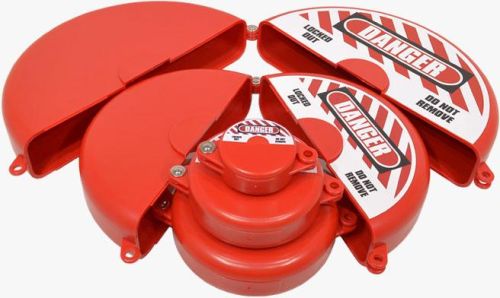 These gate valves are comprised of 2 flattened half moons with a hollow centre. Hinged at one side, they are placed over the valve and then closed, ensuring that the valve wheel is tamperproof. Use a hasp if more than one padlock is required to lockout the device.
