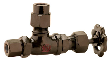 Gauge Angle Valves with a toughened glass tube for liquid level indicator in receivers and accumulators. One pair of valves are used for one set of liquid level indicator. If the glass breaks by some sudden impact, the ball inside the valves stop the refrigerant flow immediately.