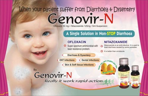 Contact SupplierWe are engaged in offering Genovir-N Syrup, which is widely recommended for those suffering from Diarrhea and Dysentery. We assure that Genovir-N Syrup is procured from the trusted vendors who assure that it formulated using an effective composition of quality tested ingredients. We lay emphasis on the packaging of Genovir-N Syrup so as to retain its medicinal properties. Composition Of Genovir-N SyrupIndications Of Genovir-N Syrup