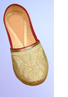 Contact SupplierThis golden jutti is made of woven copper thread jaal. There is no blank space on the upper toe, because it is full of fine embroidery work. These juttis is perfect for bridegrooms wedding occasions.