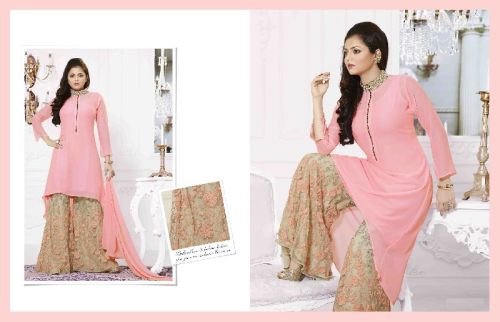 Top : georgetternbottom : palazzo pants, net, santoonrndupatta : nazmeenrninner : santoonrnwork : embroideryrnsize : free & fullrntype : semi stitching.