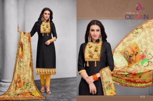 Un-stitched Matching Kurti, Salwar & Dupatta. Complete Suit will give extra ordinary Glamorous Look. Suitable for All Occasions like Function, Party, Festival Day. Â