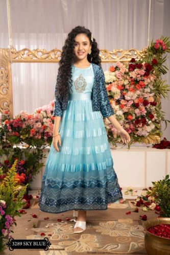Girls Georgette Satin Jaipuri Print Gown, Feature : Anti-Static, Comfortable, Easy Washable