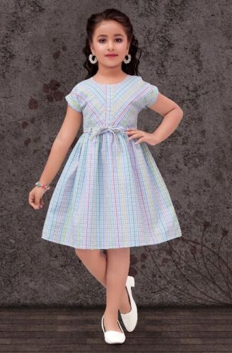 Girls Popcorn Half Sleeves Frock, Size : 22x32 Sizes
