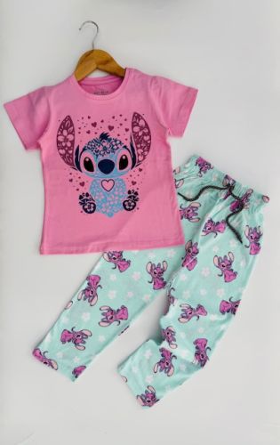 Cotton Blend Girls Stitch Graphic T-shirt Pajama Set