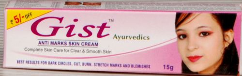 We are a well-known Gist Anti Marks Cream Manufacturer and Supplier in India. Our Gist Anti Marks Cream is an anti-marks Ayurvedic cream for all skin types. Gist Anti Marks Cream helps in removing skin marks like under eye dark circles, pregnancy stretches, scars, wrinkles, pimples, and burn marks. Gist Anti Marks Cream provides 100% results with no side effect starting from day one. Gist Anti Marks Cream should be used at night regularly for clear and smooth skin. Effective Against